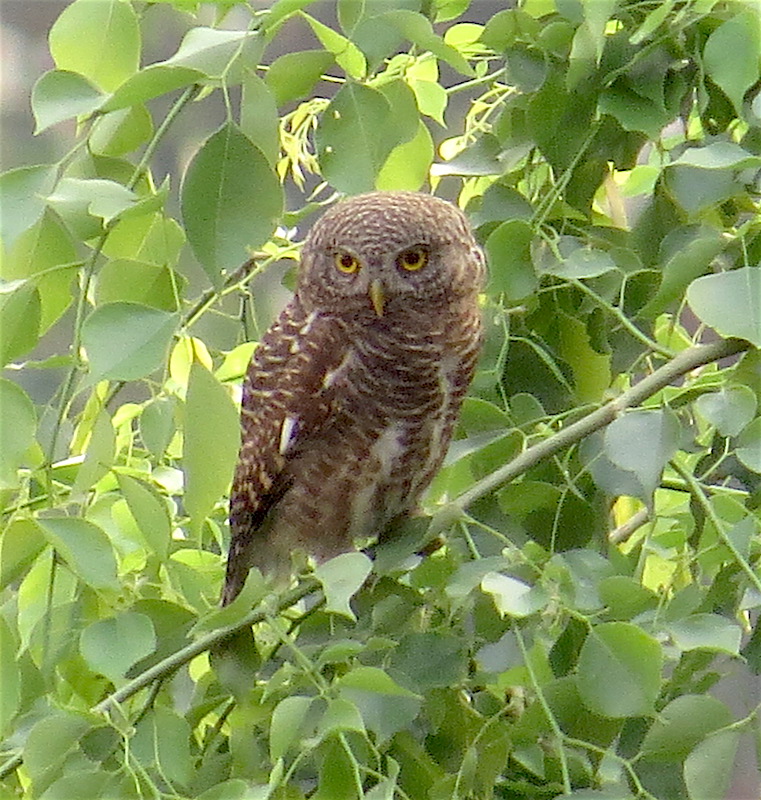 I rushed to get my camera and found this Asian Barred Owlet on his morning